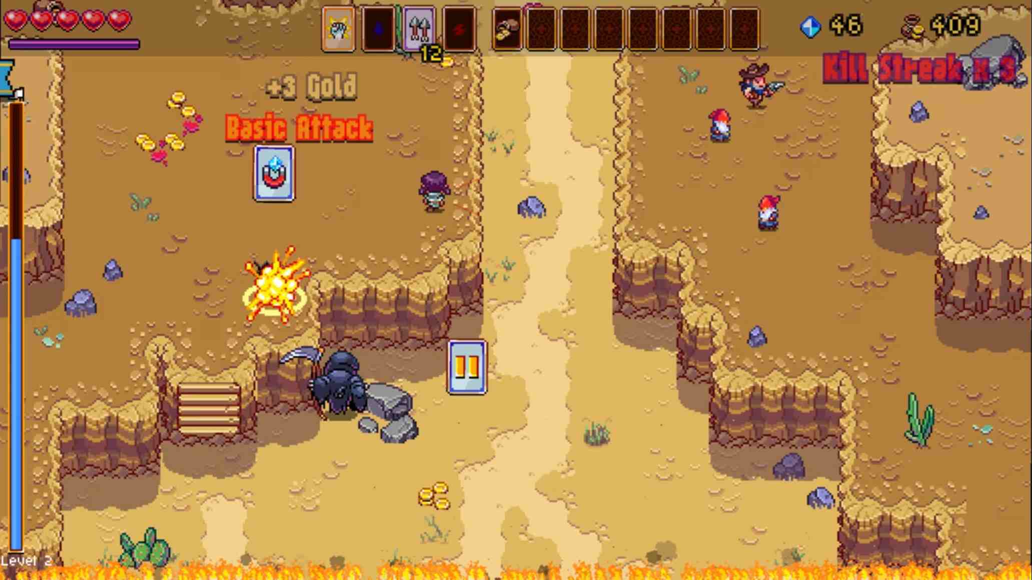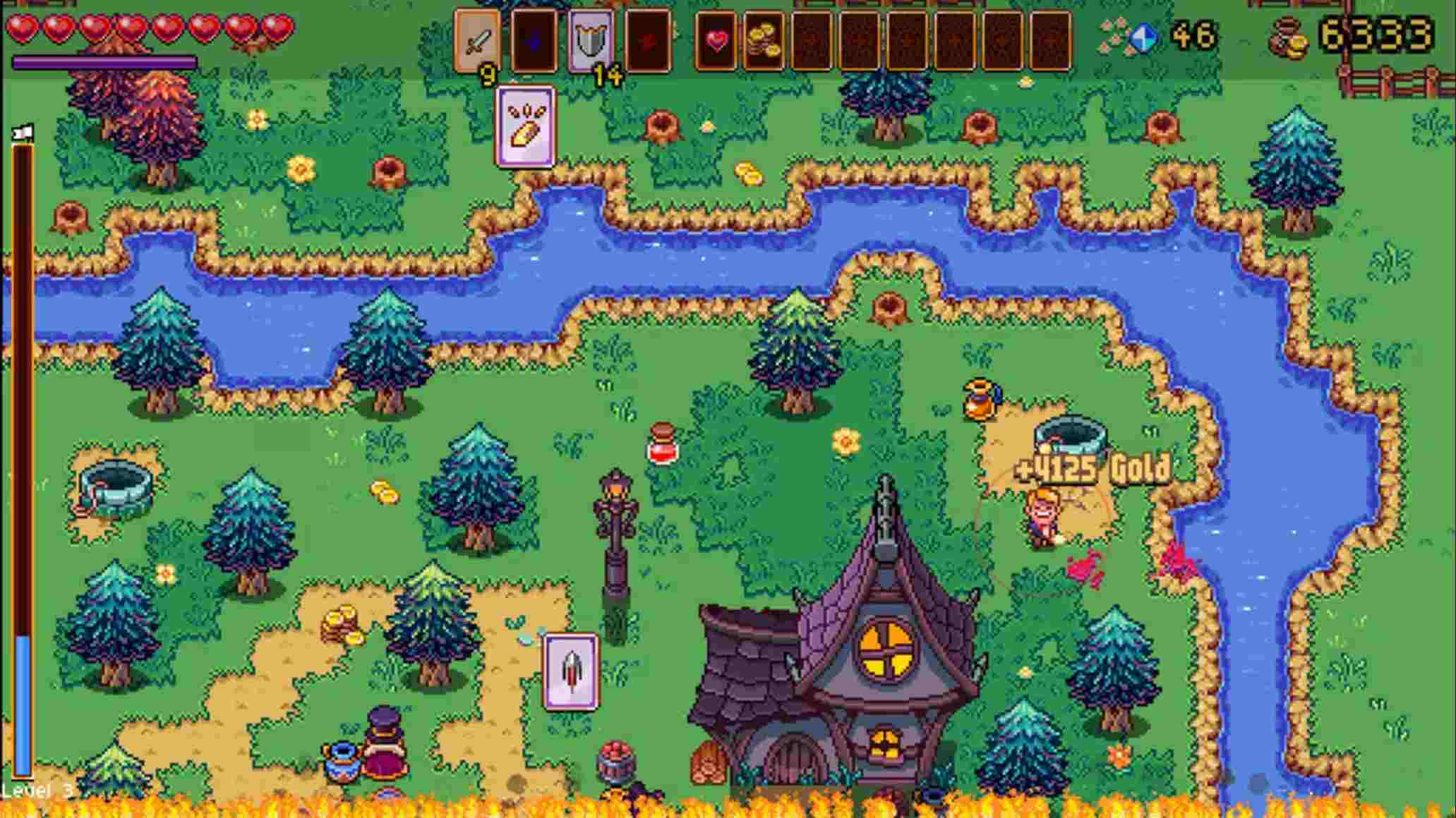 玩家可通过战斗收集金币与宝石,在途中与“古怪商人”交易,解锁永久升级、强化道具与新能力。每层关卡顶部还设有支线任务与隐藏挑战,完成可获得额外奖励。